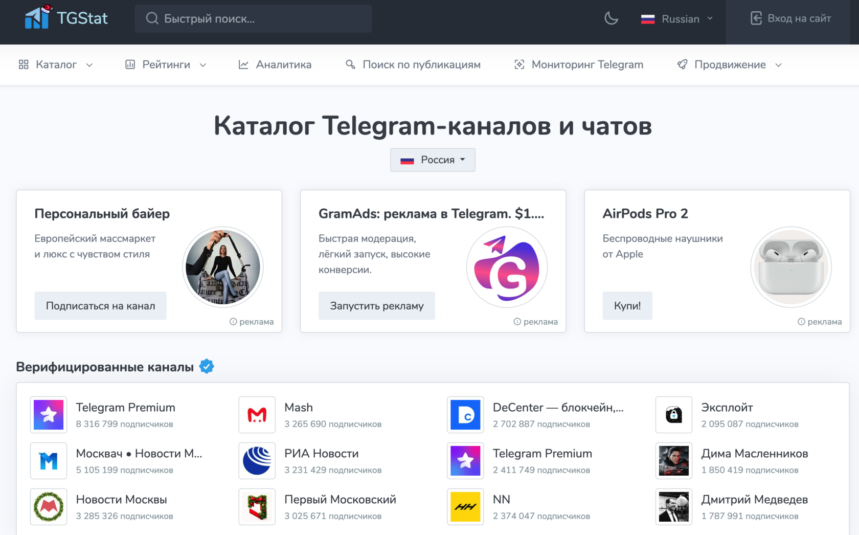 - самый быстрый и рабочий способ для каналов — TGStat;