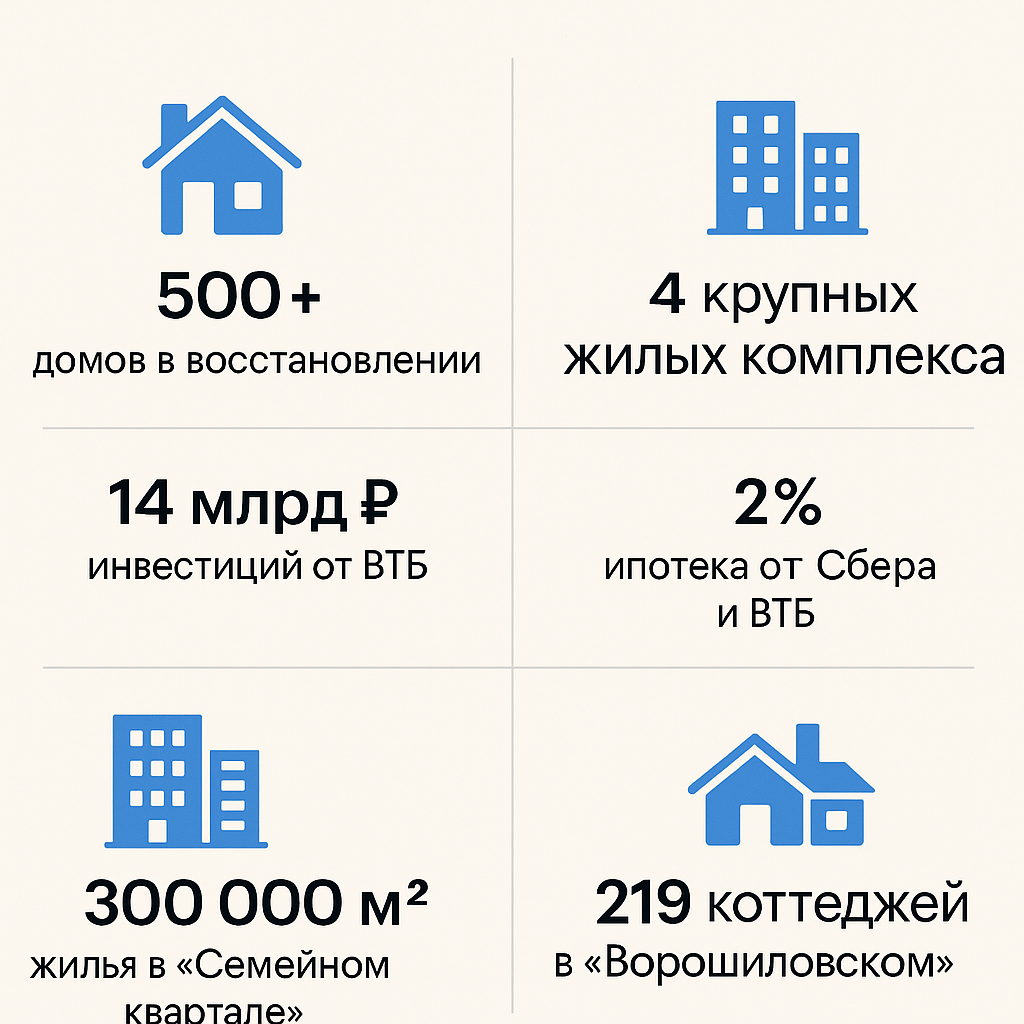 - Федеральные компании (включая структуры Минстроя) ведут масштабное восстановление.