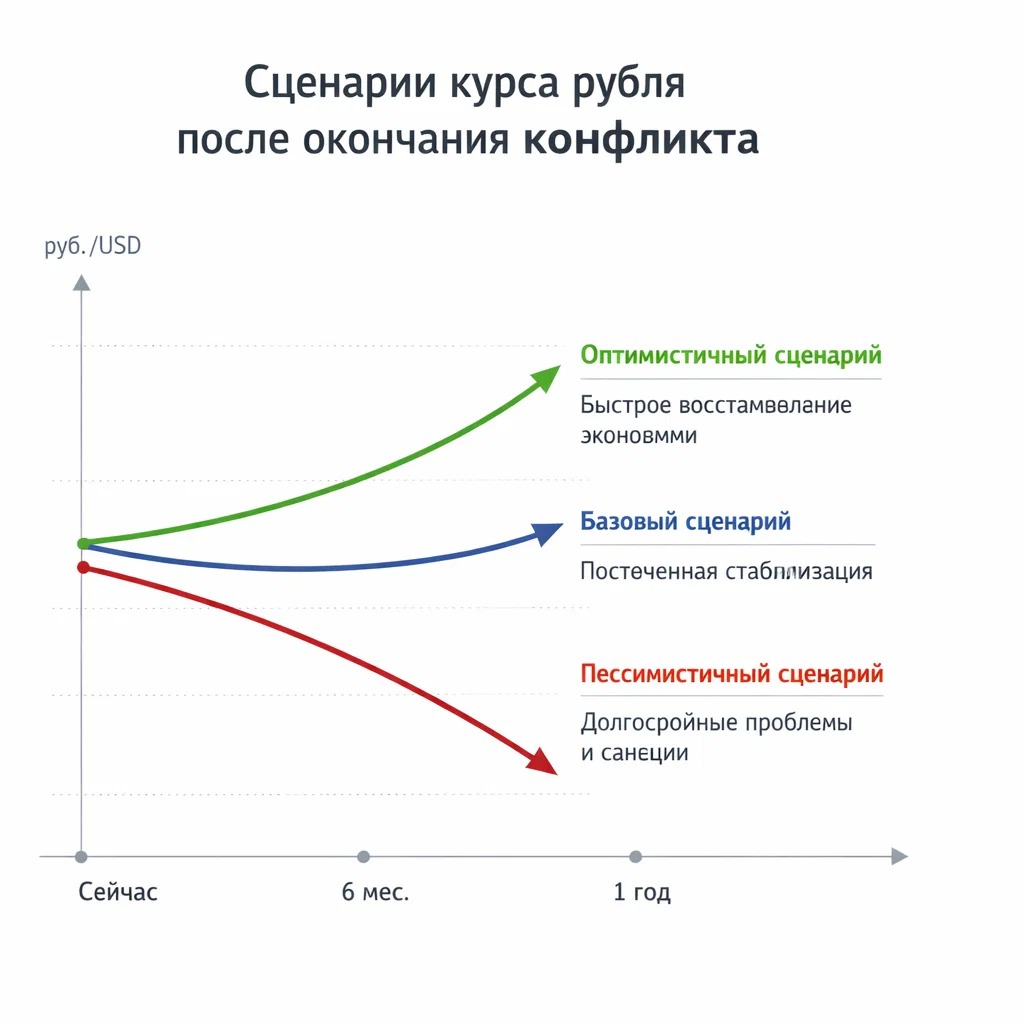 Один из ключевых вопросов: что будет с рублём после окончания конфликта с Украиной? В случае завершения конфликта и снятия части санкционного давления, мы можем увидеть: