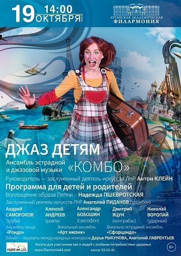 В воскресенье, 19 октября, в Большом зале филармонии — программа «Джаз детям». Музыкальное шоу-концерт с лёгким настроением, где ребёнок познакомится с джазовыми мотивами, почувствует ритм и мелодию в живом звуке.