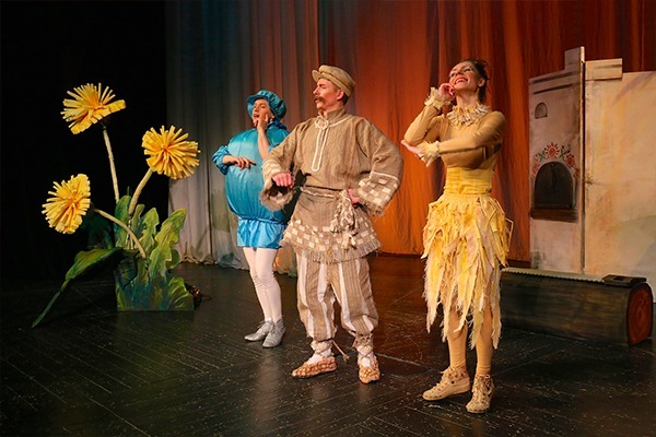 - В 11:00 в русском драмтеатре идёт добрая сказка «Лапоть, Соломинка и Пузырь».