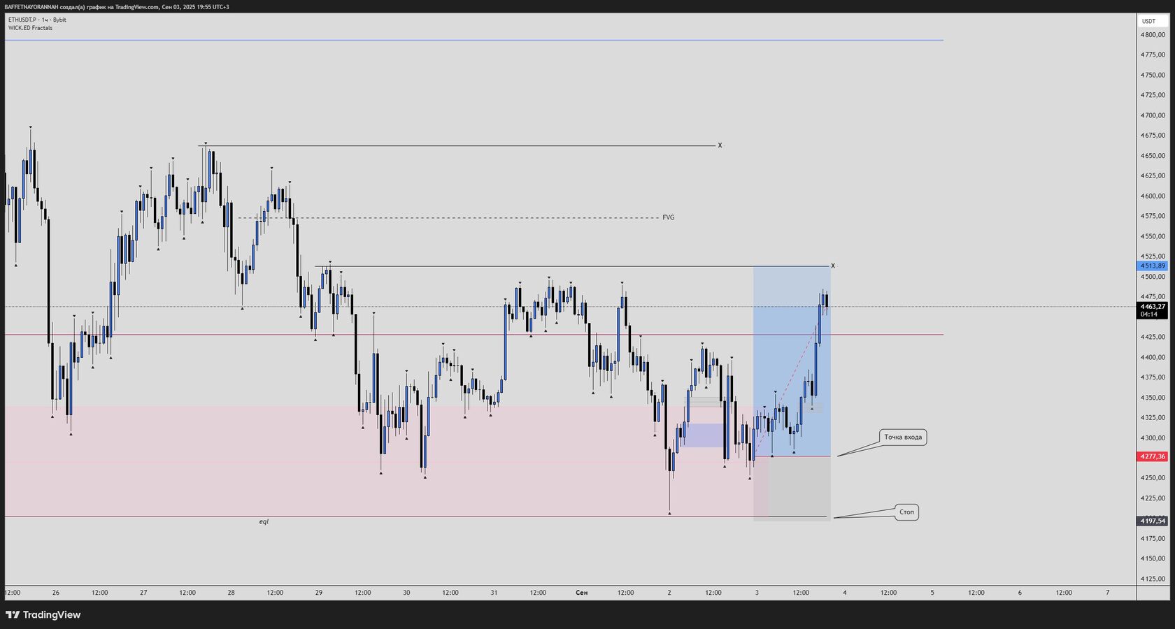 Эфир после рывка Битка в центре внимания трейдеров: с одной стороны — растущий приток ликвидности и уверенное движение по тренду, с другой — риск глубокого отката перед новым импульсом.